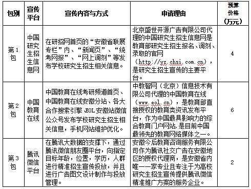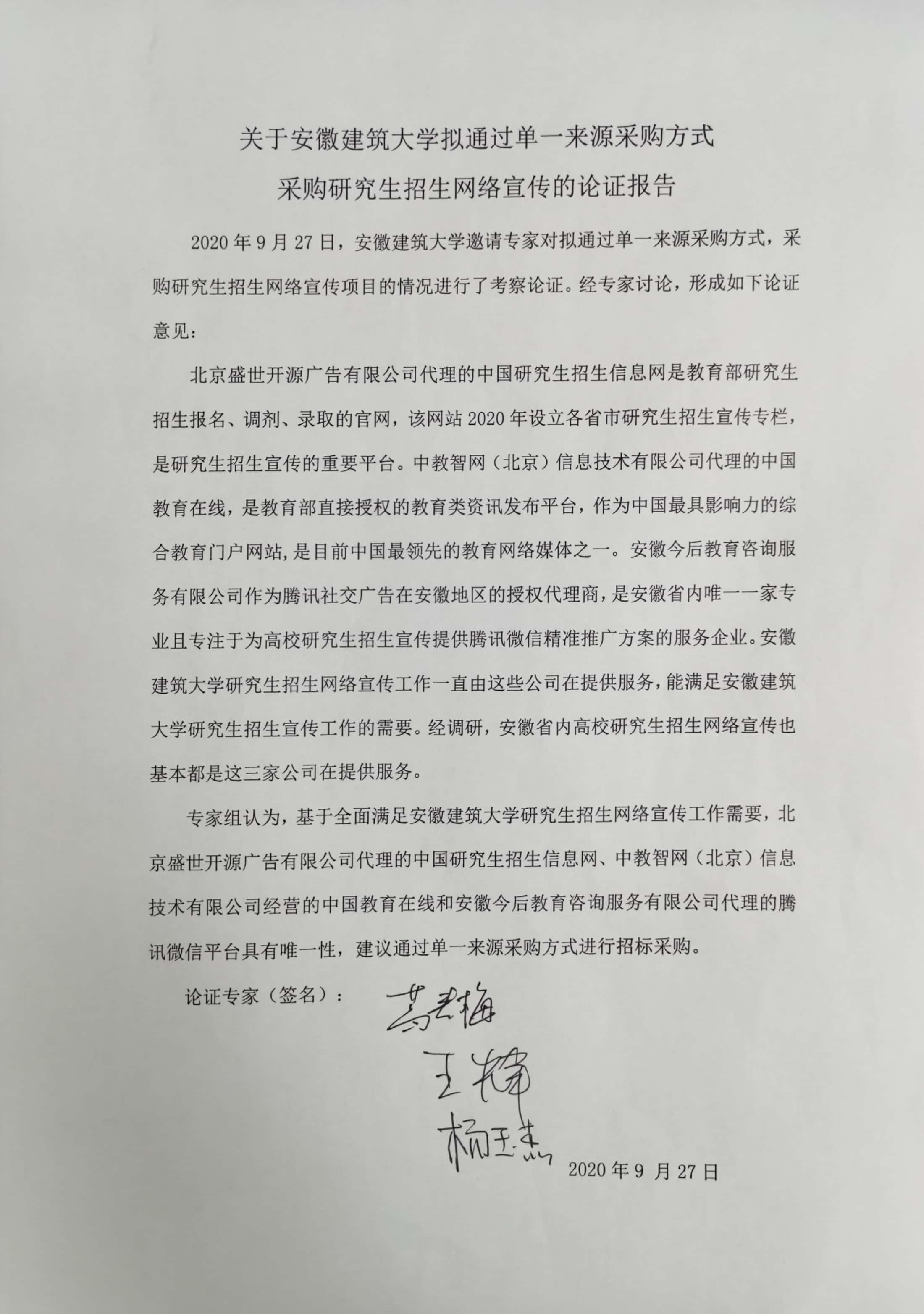 专家组认为,基于全面满足ku游官方研究生招生网络宣传工作需要,北京盛世开源广告有限公司代理的中国研究生招生信息网、中教智网(北京)信息技术有限公司经营的中国教育在线以及安徽今后教育咨询服务有限公司代理的腾讯微信平台具有唯一性,建议通过单一来源采购方式进行招标采购。