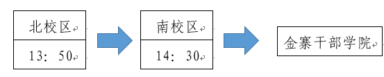 车辆将于18日(周三)1350从北校区(教学C楼门口)出发至南校区,1430准时从南校区(南大门西侧)出发前往金寨干部学院,请务必准时到达乘车地点,乘坐指定大巴。