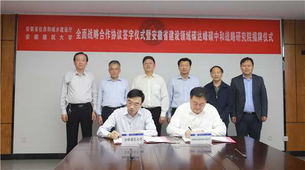 为贯彻习近平生态文明思想和碳达峰、碳中和总体要求,充分发挥高校在基础理论、关键技术、工程应用等系统性、变革性研究,创新人才培养,倡导简约适度、绿色低碳、文明健康的生活方式等方面的主体作用,切实推进安徽省建设领域碳达峰、碳中和行动,落实安徽省人民政府、住房和城乡建设部省部共建支持ku游官方合作协议,5月11日,ku游官方与安徽省住房和城乡建设厅全面战略合作协议签约仪式暨安徽省建设领域碳达峰碳中和战略研究院揭牌仪式在ku游官方南校区举行。