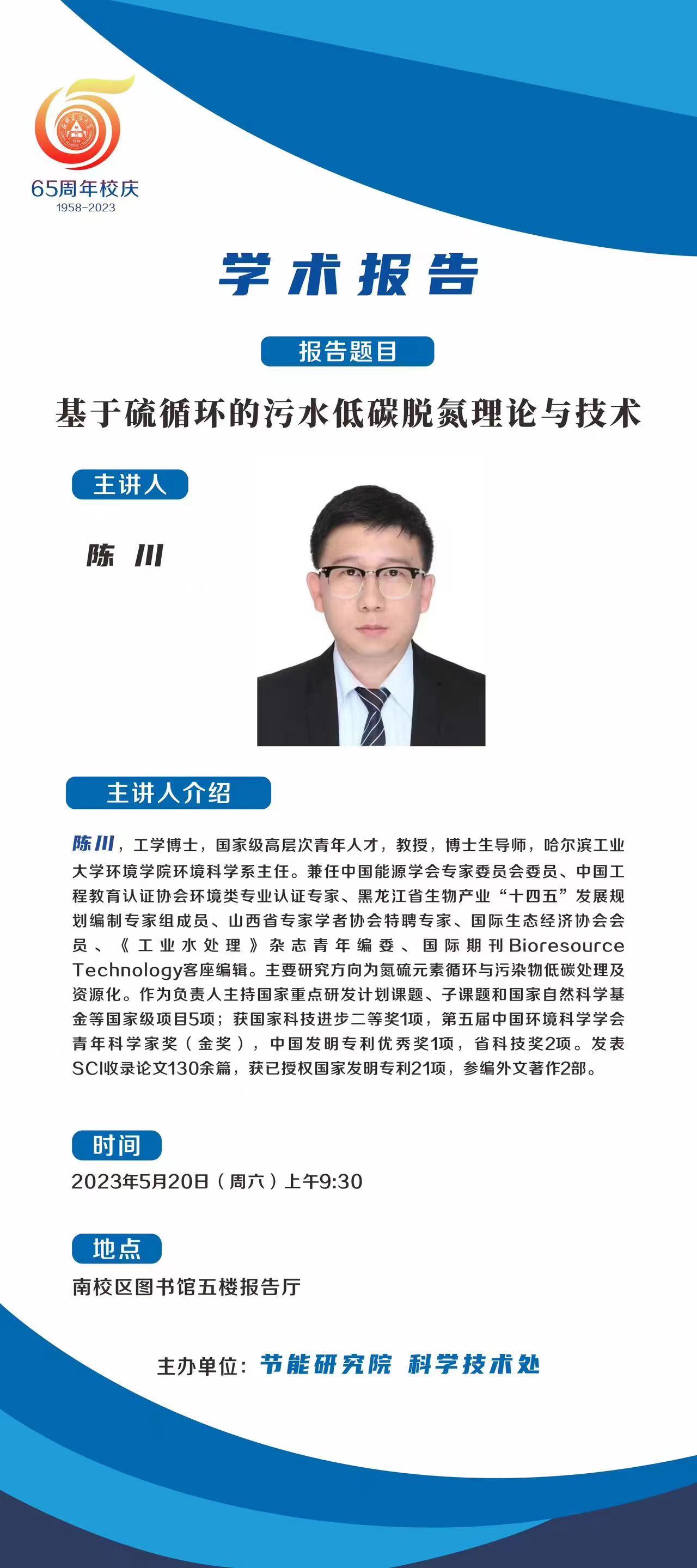 2023年第20场学术报告暨科研与科技成果转化分论坛第七期:基于硫循环的污水低碳脱氮理论与技术