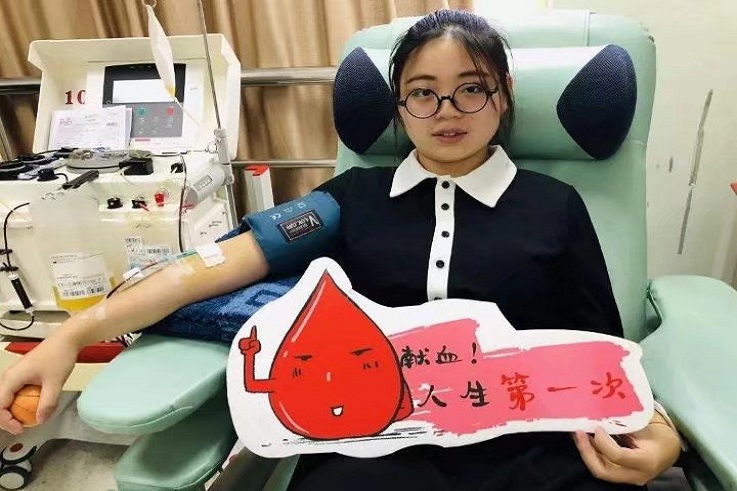 血液是由红细胞、白细胞、血小板、血浆蛋白等成分组成。成分献血是应用自动化的血细胞分离机从单一献血者中获得某一种成分的无偿献血行为。捐献的成分可以是血小板、粒细胞或外围血干细胞等。这次开展的捐献成分血是单采血小板,捐献一个单采血小板约需1-1.5小时。同学们来到献血车前排队,血站的工作人员根据《献血者健康检查要求》,对献血者进行体检和检测,包括血小板计数,各项指标符合国家规定的标准,即可进行采集。此次捐献成分血(血小板)活动全校有58人参加,共采集57.2个治疗量。