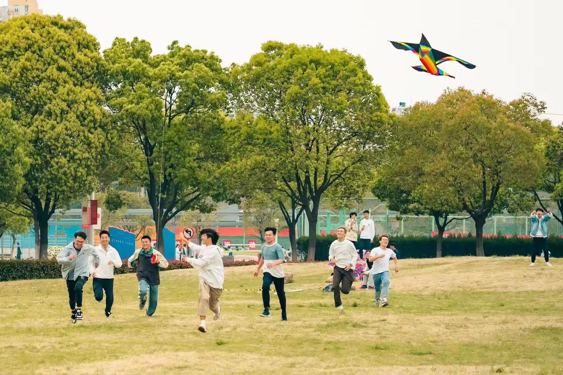 此次活动旨在丰富同学们在疫情封校期间的娱乐活动和文化生活,减轻同学们的精神压力,让同学们以积极乐观的态度面对学习与生活。活动内容包括放风筝、团队桌游、运气卡牌等。活动一开始,各项目突出的娱乐性和互动性就引起了在场每位同学的兴趣,同学们积极参与到放飞风筝、桌游竞争等游戏当中。他们在晴空之下举起手中的风筝,用自己的热情奔跑放飞,让封闭后沉闷的校园,在此刻多出别样的色彩。