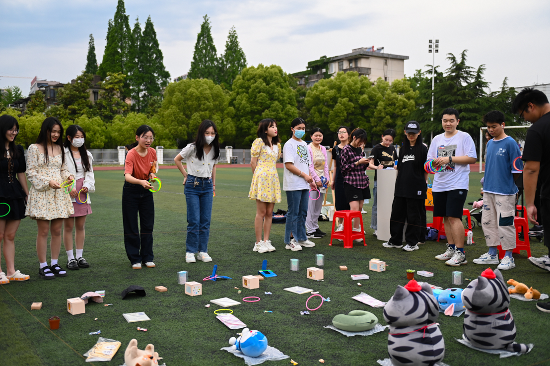 本周活动以鼓励同学们达成健身任务的形式,获得套圈,从而赢取奖励。活动前期准备了精美的玩偶,杯子,书立,笔筒等作为奖品,吸引了众多同学的目光。活动过程中,同学们与学校教职工皆踊跃参与,纷纷走进操场,接过跳绳,挥洒汗水,在徐徐微风中收获身心愉悦。套圈时,有的同学目标准确,锁定最远距离;有的同学瞄准比较容易套中的前排奖品稳扎稳打,收获颇丰。活动现场气氛愉悦,欢乐开怀,不时爆发出一阵阵喝彩声。晴日当空,五彩的套圈装点校园色彩,欢声笑语尽显春日朝气,让封闭的校园一改往日沉闷。
