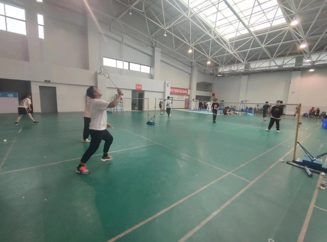 大家对此次活动做了充分的准备,认真完成比赛的策划,保证比赛的公平公正,让参赛选手都能满载而归。比赛分为单打和双打,实行11分制,单打一局决定胜负,双打是三局两胜。赛前选手进行友好试打来熟悉对手,让自己发挥得更加出色。比赛中,双方选手都拿出实力,时而扣杀,时而奔跑,十分精彩,大家相互鼓气,也充分体现了赛场上“友谊第一,比赛第二”的原则。选手们在羽毛球场里挥洒着青春的汗水,洋溢着快乐的笑容。