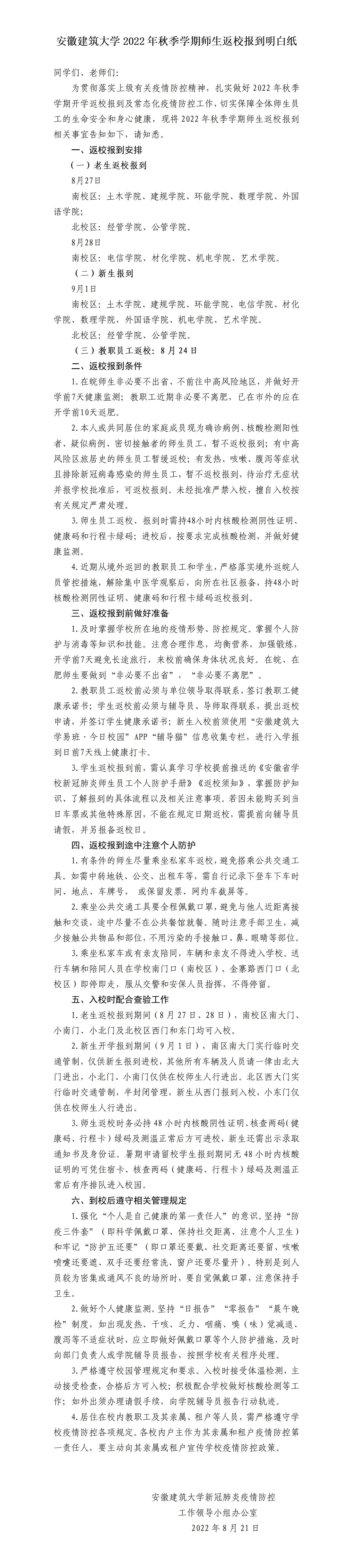 ku游官方2022年秋季学期师生返校报到明白纸
