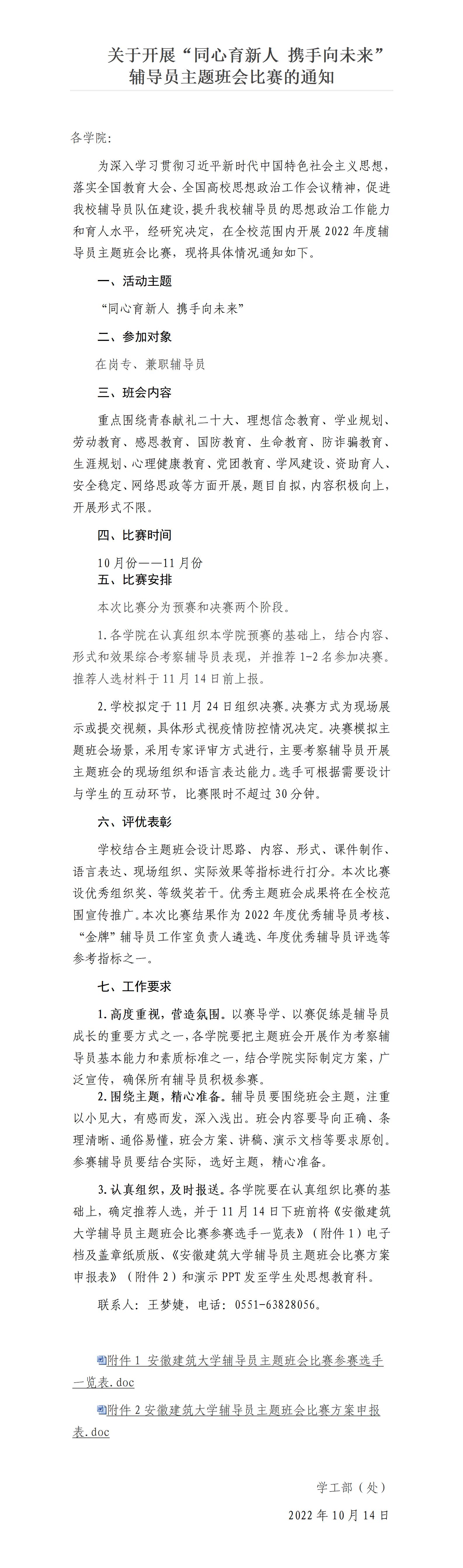 转发《关于开展“同心育新人 携手向未来”辅导员主题班会比赛的通知》