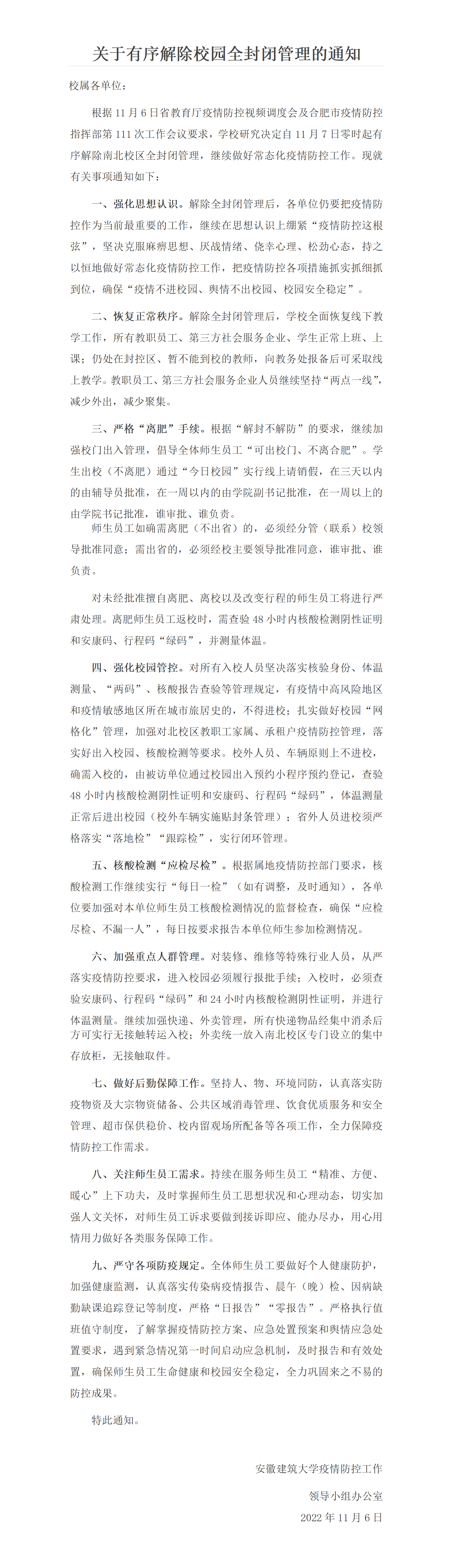 转发《关于有序解除校园全封闭管理的通知》