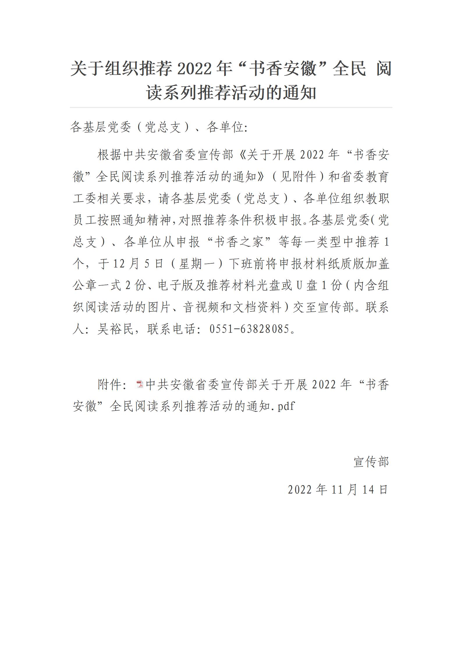 中共安徽省委宣传部关于开展2022年“书香安徽”全民 阅读系列推荐活动的通知.pdf