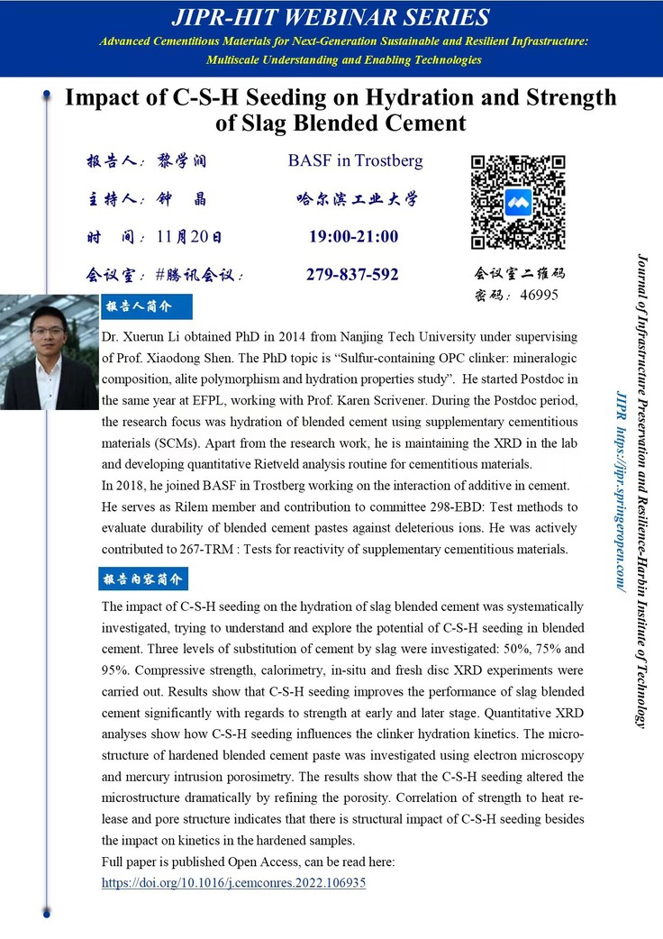 学术报告:Impact of C-S-H Seeding on Hydration and Strength of Slag Blended Cement