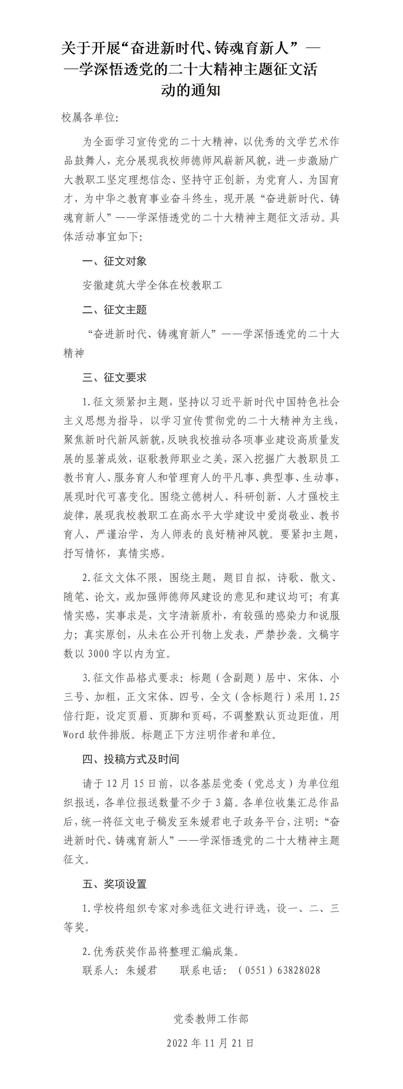 转发《关于“奋进新时代、铸魂育新人” ——学深悟透党的二十大精神主题征文的通知》