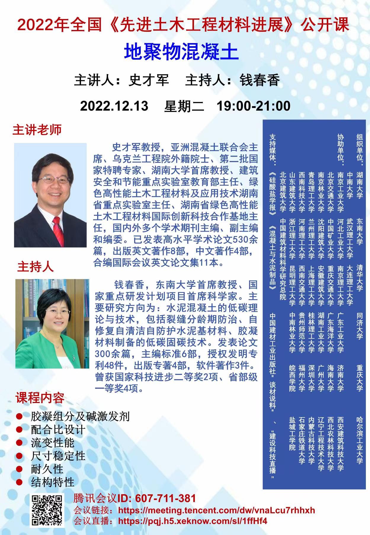 2022年全国《先进土木工程材料进展》公开课——地聚物混凝土