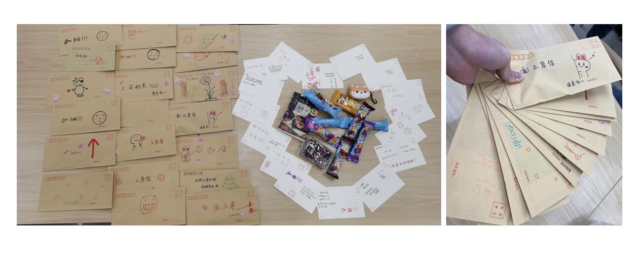 时值研究生考试最后的备考冲刺阶段,考研学子们除了要应对每天高强度的复习外,在心理上也承担着很大的压力。为了帮助考研学子放松心态,土木工程学生第一党支部组织支部成员在信纸和明信片上写下对考研学长学姐们的祝福和加油鼓劲的话语,并准备了暖心小礼品。12月20日晚,同学们来到图书馆,将信和礼物送到考研学子手中。他们将自己对于考研学子们的祝福写在了一段段优美文字里,一幅幅可爱的图画里。这些祝福化作冬日里的一缕缕暖流,寄托了同学们对于学长学姐们的殷切期望与真心祝福。