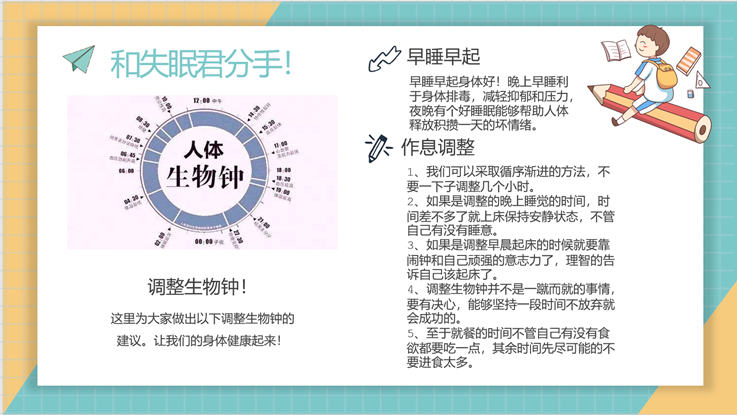 四位同学分别制作了画面精美、内容详实的PPT,再由学院辅导员转发至各班共同观看学习。18通信工程专业的赵琦以《抵制网络谣言 防范网络诈骗》为题,向同学们明晰了网络诈骗的定义、危害与处罚方式,她认为,在疫情防控期间,面对线上线下纷繁复杂的信息,更要提高甄别能力,以官方发布的权威信息为准,不信谣,不传谣,科学防骗。18建筑电气与智能化专业崔立鹏和17电子信息工程专业李备两位同学,则专注于向同学们传达如何提高疫情期间生活质量的方法,长期居家或可能导致作息时间失调等现象,通过调整饮食方式、进行必要的居家运动等与“失眠君”友好分手,学会洗手和勤于洗手也是防控疫情传播的有效方式。17电子信息工程专业的薛永强作为上一年的国家奖学金获得者,他将自身居家学习的经验同大家共享,如为自己创造一个类似“教室”的学习环境,模仿在校期间的生活作息,给予自己积极的心理暗示等等。