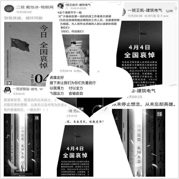 本网讯 为表达全国各族人民对抗击新冠肺炎疫情斗争牺牲烈士和逝世同胞的深切哀悼,4月4日,全国上下开展全民哀悼,缅怀英雄。电信学院学子也怀着崇敬和沉痛的心情,自发向以身殉职的抗疫英雄和不幸遇难的同胞表示追思与哀悼。