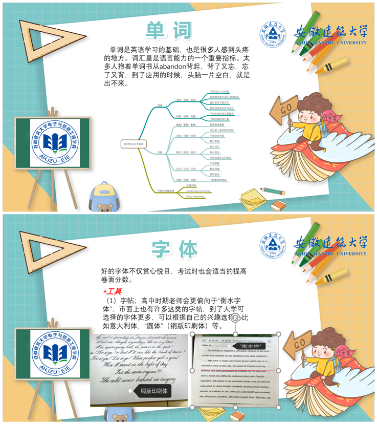 本次活动召集了分布在各个专业的“学霸”们,结合自己的优势科目,由各制作学习经验PPT,再由各专业辅导员发送到相应班群,进行分享。PPT中详细记录了“学霸们”学习时的心路历程,学霸的学习方法各有不同,但总结起来,大家都强调了课前预习和课后反思的重要性,一张张思维导图让同学们理清思绪,让看似异常复杂的专业课学习思路逐渐清晰起来。