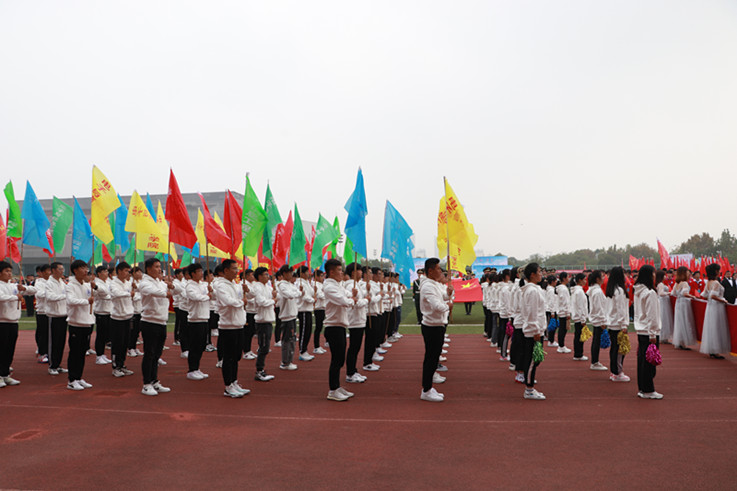 本网讯 10月29日,在运动会开幕式现场,由96名同学组成的电信学院方阵迈着整齐坚定的步伐向主席台走去,飘扬的彩旗在风中猎猎作响,洪亮的口号声响彻整个操场,电信学子朝气蓬勃,容光焕发,蓄势待发。