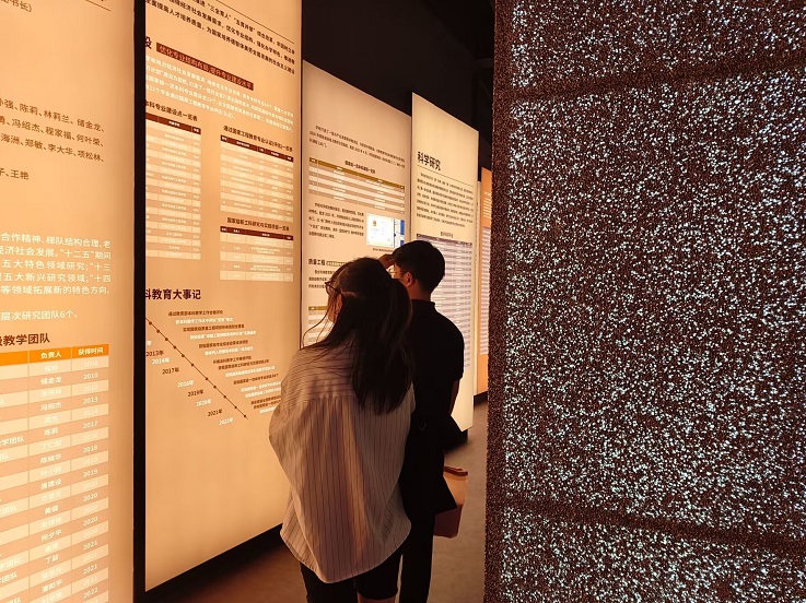 进入校史馆大门,讲解员首先介绍了场馆的整体分布,包括建基、建构、建设、建树、建才五个板块,由这五个板块延申了学校整体发展史,在讲解员绘声绘色地讲解和带领下,学生们有序地进入各展厅进行参观。