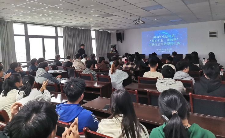 本次比赛以“我的专业,我的梦”为主题,吸引了学院众多参赛队伍,共有34组作品代表学院七大专业(电子信息工程、通信工程、计算机科学与技术、网络工程、物联网工程、建筑电气与智能化、电子科学与技术)参加现场评比。赛前,各团队精心备赛,将独创的想法录制剪辑成宣传视频。比赛中,各团队通过视频播放、个人讲解等方式展示作品。他们细说灵感的来源,用独特的视频风格和丰富的视频内容充分介绍和宣传自己的专业,展示电子与信息工程学院各专业的学科优势、教学资源、实践平台、就业前景等方面的特色,激发同学们对专业的热爱和向往,展现了学院各专业的魅力。