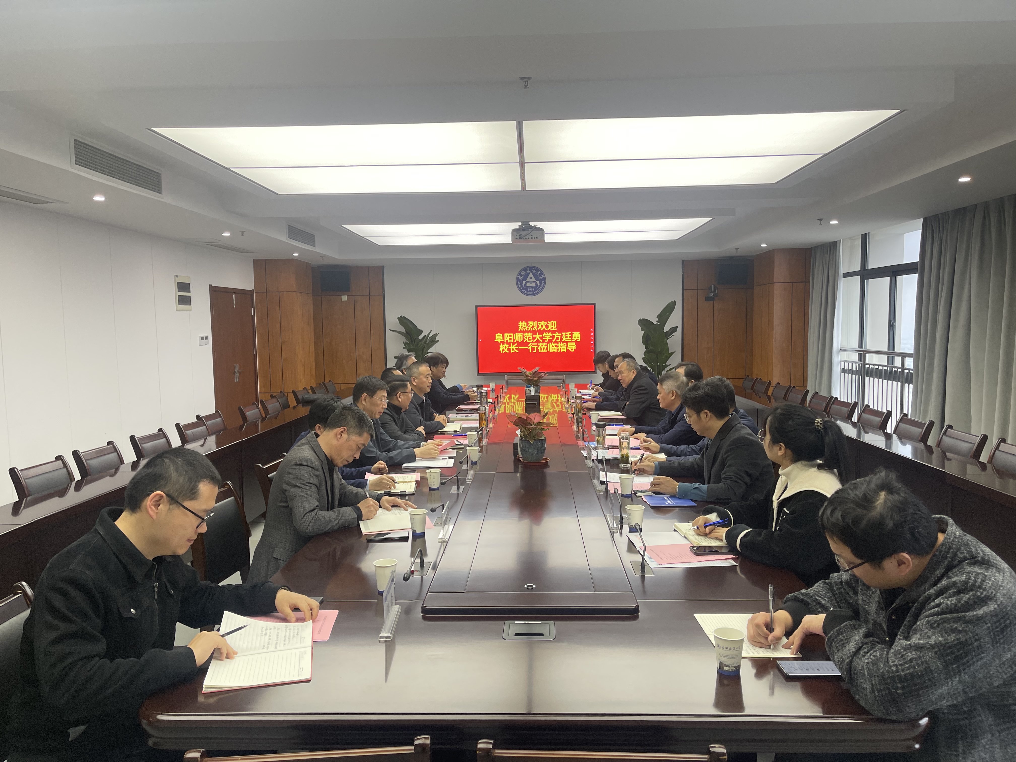 闵杰代表学校对方廷勇一行的来访表示热烈欢迎,并介绍了学校发展建设情况,分享了学校在学科建设、“十四五”发展规划、人才培养和师资队伍建设等方面的经验和建议。闵杰表示,长期以来阜阳师范大学与ku游官方之间联系密切,结下了深厚友谊,期望今后两校互帮互助,进一步加强沟通交流,充分发挥双方优势,携手进步,实现互惠共赢,为推动安徽省高教事业发展贡献力量。 方廷勇对学校的热情接待表示感谢,简要介绍了阜阳师范大学的基本情况、办学特色以及近年来在学科建设、人才培养和师资队伍建设等方面取得的重要成果。他强调,此次到访旨在学习借鉴建大在发展规划、博士单位建设和申报、师资队伍建设、教学科研管理等方面的经验做法,希望以此为契机深化双方之间的交流联系,学习经验,共促发展。 座谈会上,双方与会人员围绕发展规划、学科建设、博士点申报、高层次人才引育、科研教学管理等工作进行热烈讨论。会后,双方各职能部门负责人到相关办公室进行深度走访,展开了更加深入的工作探讨。(作者:殷诗琦/审核:冯绍杰)