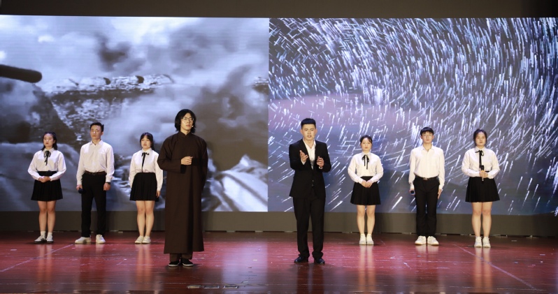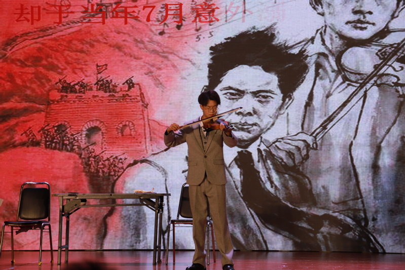 《党旗下》、《船》、《永不消失的声音》、《我用残损的手掌》,依次翻开了党的百年历史画卷,从播下革命火种的小小红船到南昌起义,从祖国成立到改革开放,每一卷都深深打动着全体师生;情景剧《钢铁雄狮之亮剑小组》、《聂耳小提琴》带领同学们重回战火纷飞的年代,看红军先辈们冲锋陷阵,看爱国文人们用自己的力量守护人民、守护党、守护祖国。