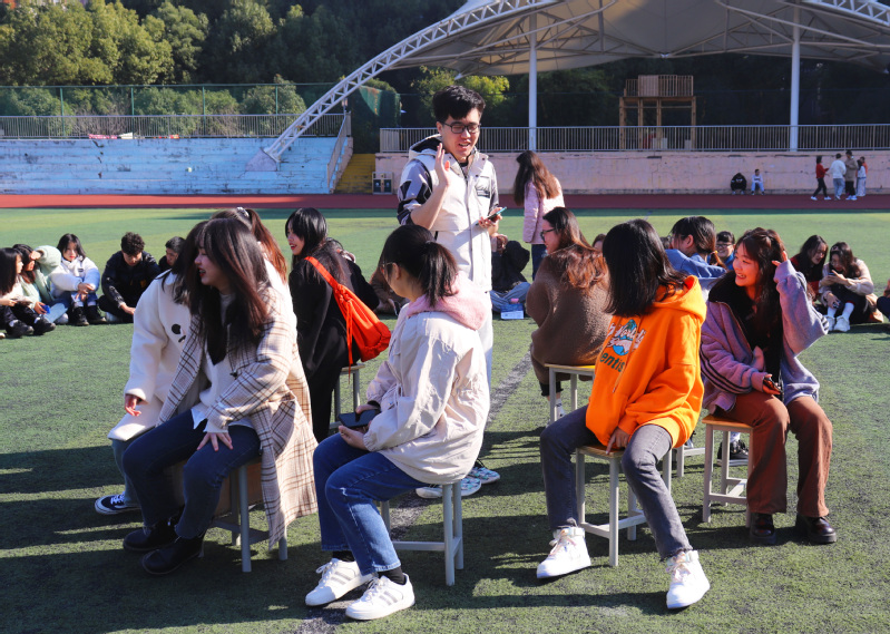 124日,公管学院在北区风雨操场举办“与心灵相约,与健康同行”心理团辅活动。此次团辅活动兼具娱乐性和益智性,以学生们喜闻乐见的娱乐方式——听歌识曲开始互动,歌曲层出不穷,学生们仿佛成为中华小曲库,欢乐的唱出熟悉的歌曲;在欢声笑语中,考验反应力与注意力的抢凳子比赛开始了,学生们聚精会神,随着音乐的节拍落座抢凳子,凳子的数量越来越少,但学生们的欢呼声和笑容越来越多;最后,全体同学共同深情演唱《我和我的祖国》,表达对祖国母亲的崇高敬意与爱国情怀,时刻提醒自己肩负的时代责任与历史使命,活动在优美的歌声中落下帷幕。