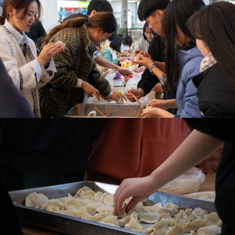 劳动教育有声有色传递浓浓校园温情情暖冬至,爱在校园。为切实发挥劳动教育在学院开展“立德树人”工作中的重要意义,教育引导广大青年团员弘扬劳动精神,热爱劳动、崇尚劳动、尊重劳动,团结协作,在劳动中展现我院学子有温度、有能量、有生命力的精神风貌。活动当天,大家齐聚北园餐厅,在食堂阿姨的指导下和面、擀皮、包饺子,大家分工协作,动作娴熟,有条不紊,活动现场欢声笑语,热闹非凡,忙得不亦乐乎,像家人一般其乐融融。经过两个多小时的努力,一盘盘热气腾腾的饺子终于出锅了,每个人的脸上都洋溢着节日的喜悦,也感受到了学校的关怀和节日的温暖。