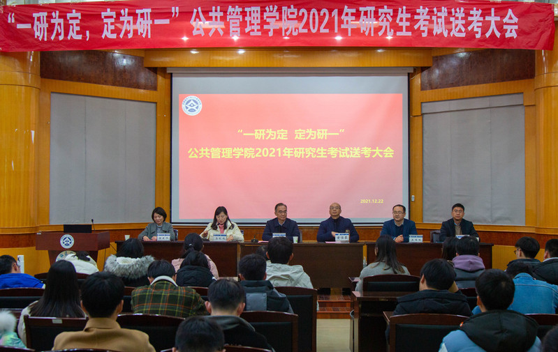 本网讯  2022届研究生考试来临之际,公共管理学院为表达对全体考研学子的关爱和祝福,于1222日下午在F楼三楼会议室举行了爱心送考大会。公管学院领导班子、各教研室主任、毕业生辅导员和2018200名报考研究生的学生参加了此次会议。本次会议由学院党委副书记马晓艳主持。