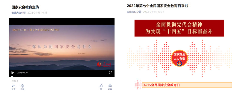随后,吴永杰向大家介绍了国家安全教育日的具体内容,特别强调要坚持不懈抓好校园疫情防控,深入浅出地讲解了当前国家安全的变化形势,让党员们深有触动。同时,为加强对国家安全知识的宣传,扩大宣传面,通过“安建大公小管”新媒体平台发布国家安全教育普法相关推文,组织学生在线完成全民国家安全教育日有奖竞答活动,促使党员学生将总体国家安全观内化于心、外化于行。