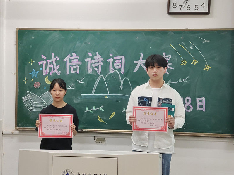 本网讯  为进一步加强学风建设,教育和引导学生弘扬诚信美德,了解中华优秀传统文化丰富的人文内涵近日,公共管理学院举办了以“立诚于心,树信于行”为主题的诚信诗词大