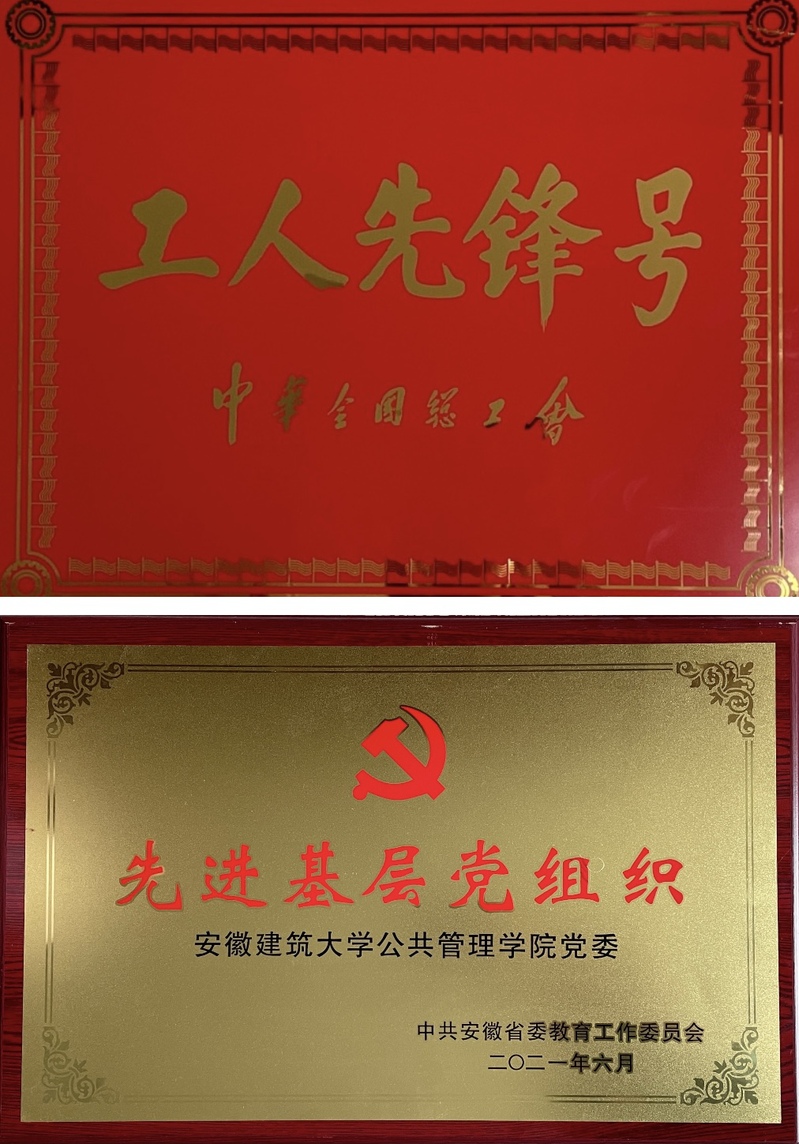 几年来,党建领航,推动学院发展不断取得新成效。学院党委连续五年评为学校“先进基层党组织”,2021年获安徽省高校“先进基层党组织”荣誉称号;学院连续七年获得学校党建发展综合考核“优秀”;连续十多年获得学校“新闻宣传工作先进单位”称号;2021年,学院被省总工会授予安徽省“工人先锋号”荣誉称号,2022年学院获得“全国工人先锋号”荣誉称号。丁仁船教授获得“安徽省优秀共产党员”称号;黄佳豪教授获得安徽省社保研究会“有突出贡献的学会工作者”荣誉称号;马晓艳副教授入选全国思想政治理论课“教学骨干”,2020年被授予“安徽省五一巾帼标兵”荣誉称号,2021年评为“安徽省高校优秀党务工作者”。