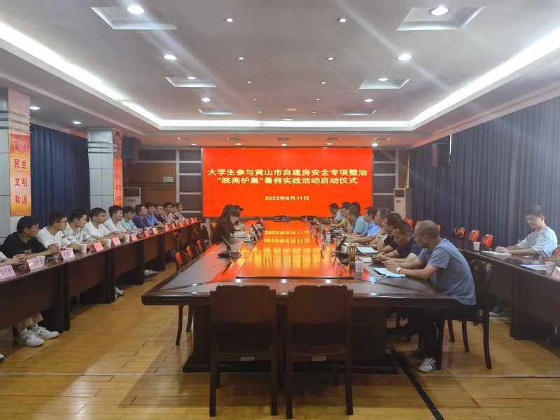 本网讯 近日,为积极响应安徽省住房和城乡建设厅、共青团安徽省委员会号召,落实学校工作部署,公管学院广泛宣传、积极动员,精心遴选11名黄山籍大学生参加“皖燕护巢”暑期社会实践活动,助力当地自建房安全专项整治活动。公管学院党委副书记马晓艳、相关辅导员赴黄山市进行工作对接,黄山市住建局党组成员、副局长余强以及区县住建局负责人组织启动仪式,并就校地分工协作进行研究与落实。