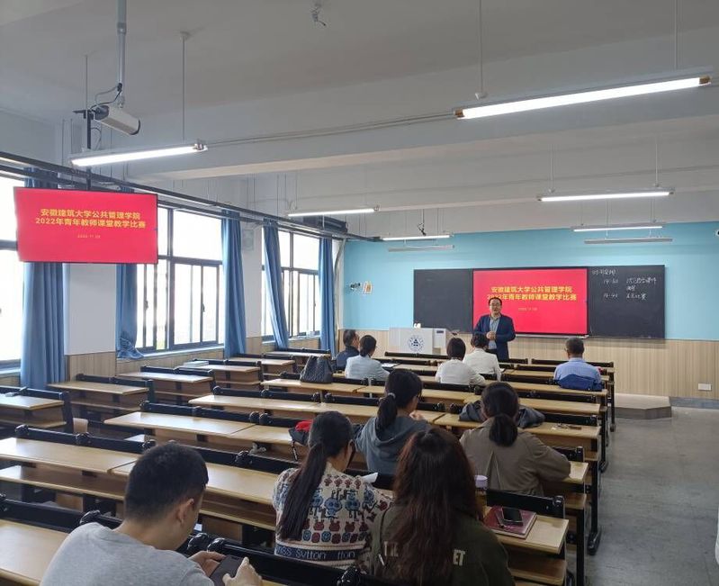 本网讯 为持续加强师德师风建设、锤炼青年教师教学基本功,公管学院2022年11月9日在F512智慧教室组织开展青年教师课堂教学比赛。比赛邀请合肥工业大学于宝证教授、安徽医科大学李菲菲教授、我校督导组李齐全教授和许海燕教授、学院组织员李道先等教学专家担任评委,学院副院长连瑞瑞主持会议,二十多位青年教师参加活动。