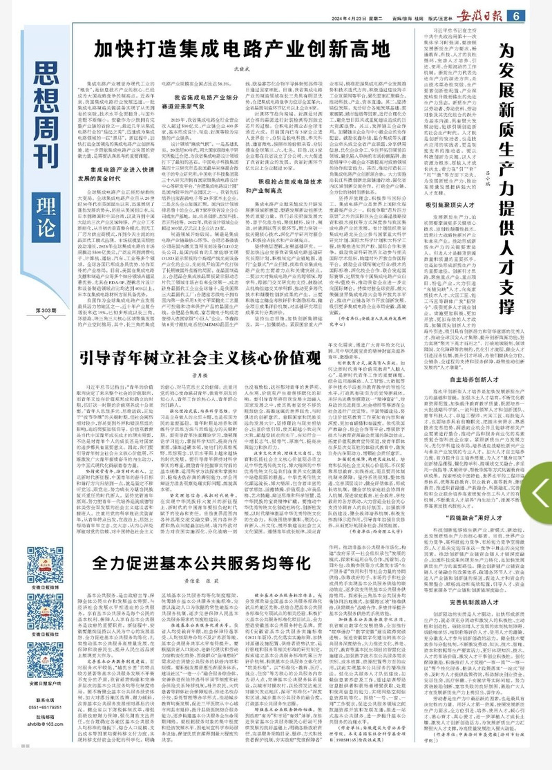 文章指出,基本公共服务,是由政府主导、保障全体公民生存和发展基本需要、与经济社会发展水平相适应的公共服务。享有基本公共服务是每个公民的基本权利,保障人人享有基本公共服务是政府的重要职责。新征程中,安徽要全力促进基本公共服务均等化,扎实推动基本公共服务高质量发展,需在完善基本公共服务制度建设、推进基本公共服务优质共享、健全基本公共服务标准体系、增强基本公共服务供给韧性和加强基本公共服务数字化应用等方面协同发力。(审核:黄佳豪)