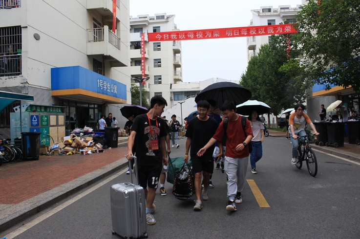 一条条红色的横幅“气有浩然无止境,无悔四年经管人”“我想你一定很舍不得离开,所以你只看前三个字就好”“祝经管学院毕业生毕业快乐,前程似锦”分别挂在寝室楼和欢送大道两旁,表达着对毕业生的浓厚情谊和美好祝愿。学生志愿者连续两天设置帐篷服务点,为有需要的毕业生搬运行李,提供热情的帮助和服务,一路将他们送到校门口,并送上真挚的毕业祝福。