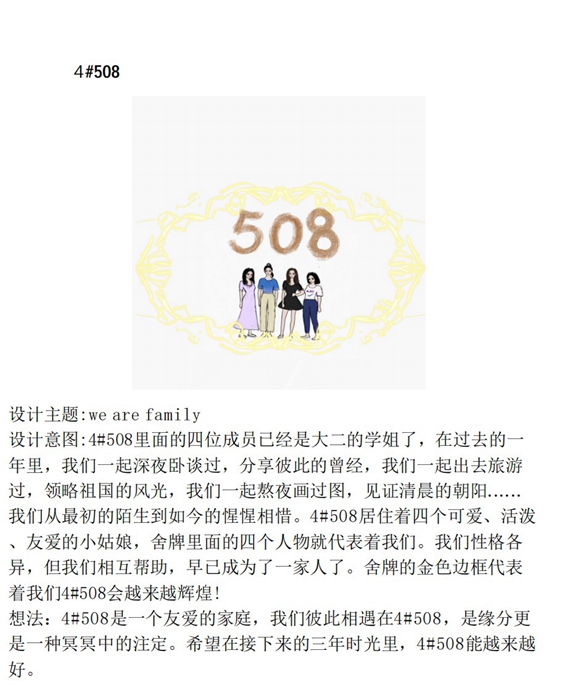 本次活动通过学生的亲身参与,发挥了同学们的创作能力,彰显了寝室文化特色,加深了同学间的交流和感情,营造出了团结友爱、积极活泼的良好氛围。(作者:刘晓丹 张逸凡;审稿:帅英)