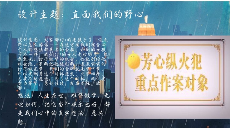 比赛中,九个参赛寝室分别派出代表上台,通过演说PPT的方式向评委和观众展示自己的设计,进一步阐述门牌的设计理念和蕴含的情感。内容丰富,色彩多样的PPT记录了同学们日常生活中的美好,展现了积极进取的精神,获得了观众的热烈掌声。
