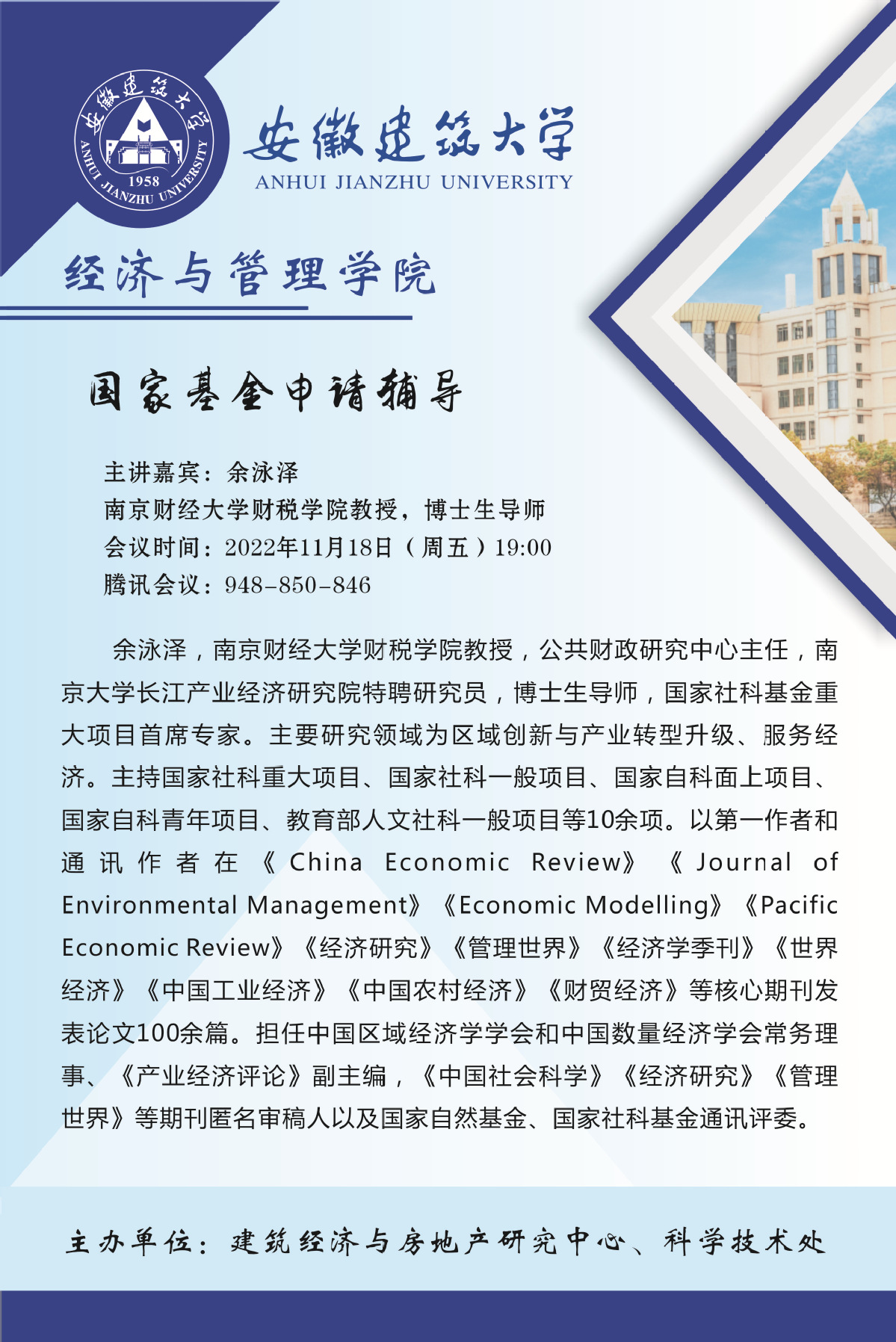 国家基金申请辅导预告