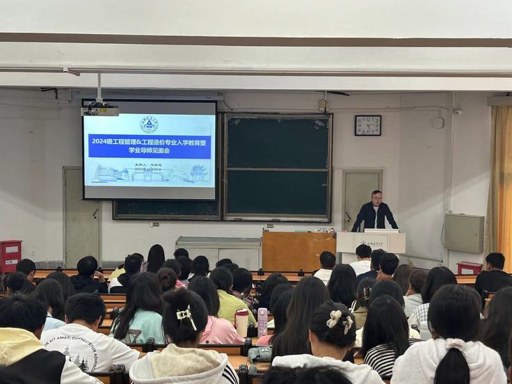 本网讯 2024年10月9日,工程管理系在F218教室举办2024级新生入学教育活动,学院领导、新生学业导师、辅导员以及全体160名新生共同参与,活动由新生辅导员余大纬主持。