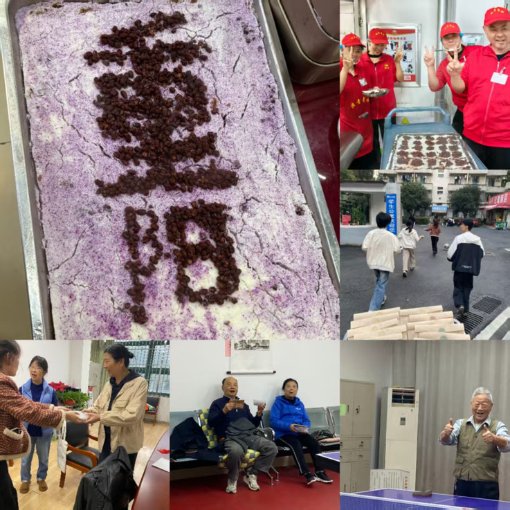 活动首站设在食堂二楼鸿青餐厅。师生们齐聚一堂,动手制作象征“步步高升”的重阳糕。大家分工协作,筛粉、拌馅、压模,现场气氛温馨热烈。不一会儿,糯米粉与枣泥、红豆等原料在默契配合下化作整齐排列的糕点,传递出浓浓的节日问候与协作乐趣。