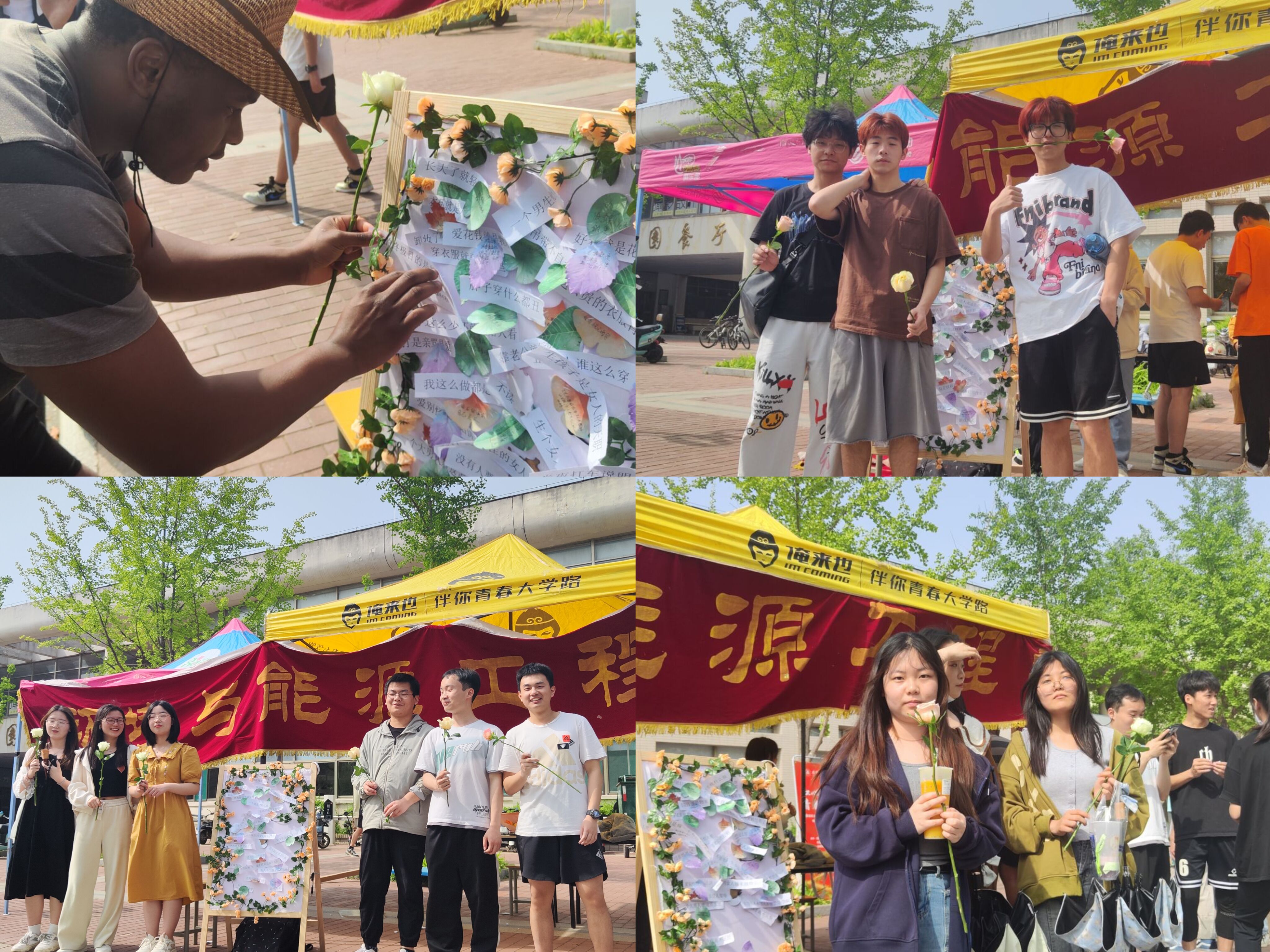 4月12日,环能学院在南区北食堂广场举办不被“标签”束缚的青春心理活动,鼓励同学们乐观自信,勇敢做自己。活动中,同学们在事先准备好的展板上选择标签并撕下,现场写撕下该标签的原因或留一句鼓励的话,便可领取一支鲜花。撕掉的标签,赠与的玫瑰,是不被世俗束缚的自由,鼓励每一位同学都能够撕去标签,不被定义,拥抱最澄澈明亮的自己。