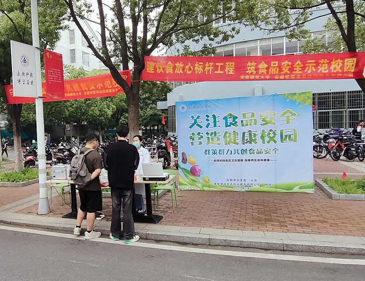 活动现场,安徽安诺食品检测服务有限公司以及后勤服务集团相关部门工作人员与同学们进行互动交流,宣传食品安全知识,并对如何食用健康营养膳食提出科学建议。在现场实验展示环节,学校食品检测室的工作人员邀请学生代表参与快速检测各类蔬菜等原材料农药残留、非法添加等实验。同学们在参与实验后纷纷表示,收获很大,受益匪浅。要从我做起,从现在做起,成为校园食品安全的“宣传员”。(文/图:程少聪;审稿:唐黎)
