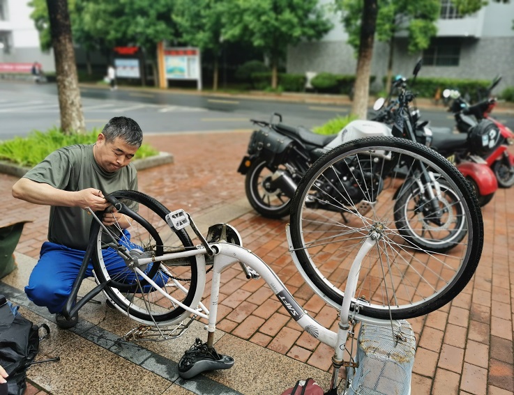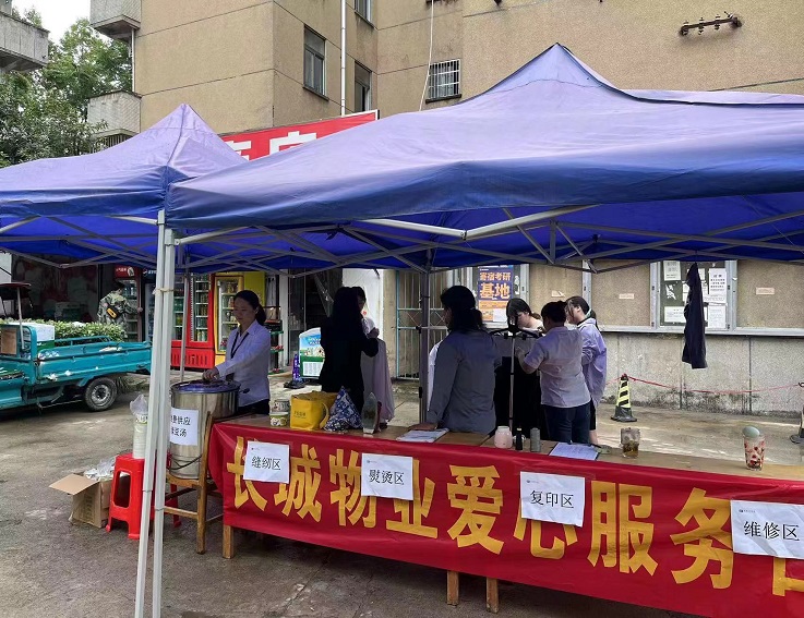 通过前期的公众号推送,各楼宇进行通知张贴以及爱心服务日定期举办的特点,有相关需求的同学早已在现场排起队,等待师傅和阿姨们为他们解决“疑难杂症”,有修自行车的,有缝补衣服的,有裁裤脚的,还有带小娃娃来修补的,现场有条不紊,工作人员各司其职,热情周到地为同学们服务。