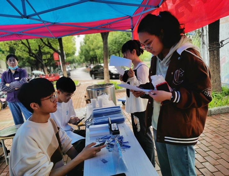 等待的同学在一边参加起节水宣传周知识的问答,能源中心定制了钥匙扣、鼠标垫和签字笔等礼品,参与答题就有奖,得到同学们的积极参与,活动准备的60余份小礼品均通过答题全部发放,通过寓教于乐的方式,宣传节水节能知识,倡导青年学生践行节水理念。