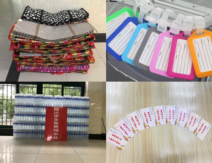 为搬迁学生准备了3000个编织袋、行李标牌,2000瓶矿泉水,4桶绿豆汤,1500张搬迁餐券,全力以赴保障搬迁工作顺利完成。(文/图:汪璇 陈委婕;审稿:唐黎)