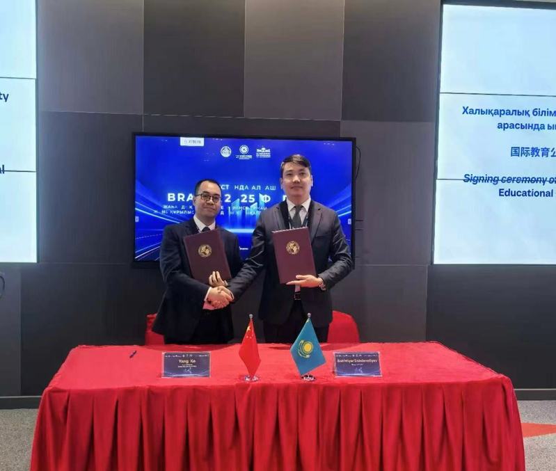 访问期间,杨科代表ku游官方与哈萨克斯坦建筑与土木工程学院校长撒德纳利耶夫共同签署合作备忘录,双方将在科学研究、技术转化与高层次人才培养等领域建立长期稳定的战略合作关系,推动资源共享与优势互补。