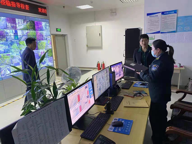 4月9日上午,为加强对周末值班值守、疫情防控措施落实等情况的监督检查,王玉兰带队深入南北两个校区,实地查看学校南北大门、总值班室、校园监控室、学生公寓等地,对大门处级干部值班、学校周末总值班、校园封闭管理等情况进行督查检查。