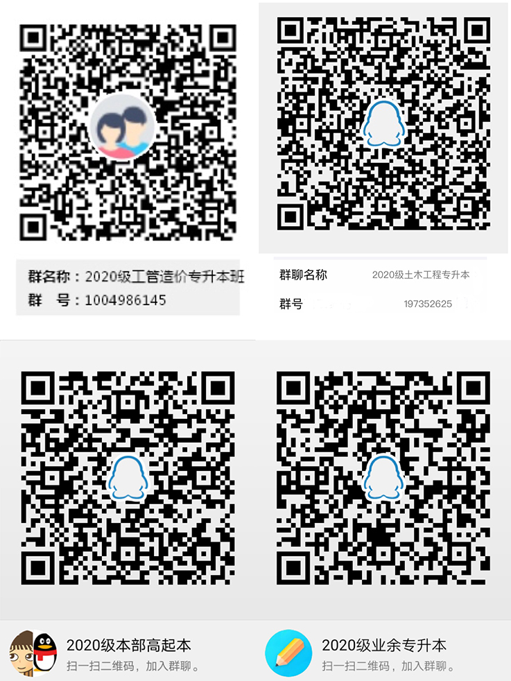 校本部 2020级新生班级群如下(请用"身份证号+姓名+专业"验证通过): 注意!教学点的同学请不要加此群。