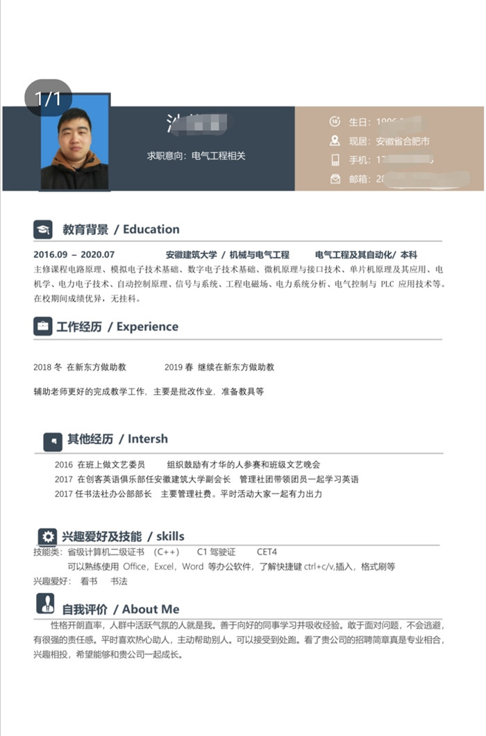 本网讯 现展示第一阶段推选出的线上“最美简历”优秀作品如下: