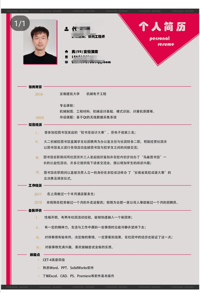 本网讯 现展示第一阶段推选出的线上“最美简历”优秀作品如下: