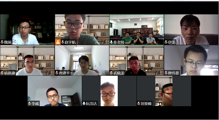 参会研究生逐一汇报了自己在家的生活、学习及线上教学活动等情况,一致表示,面对疫情防控的严峻考验,我们唯有安心在家,静心学习,才是爱家爱校爱国表现。同时也反映受疫情影响,不能如期返校开展实验、师生交流不畅等问题。
